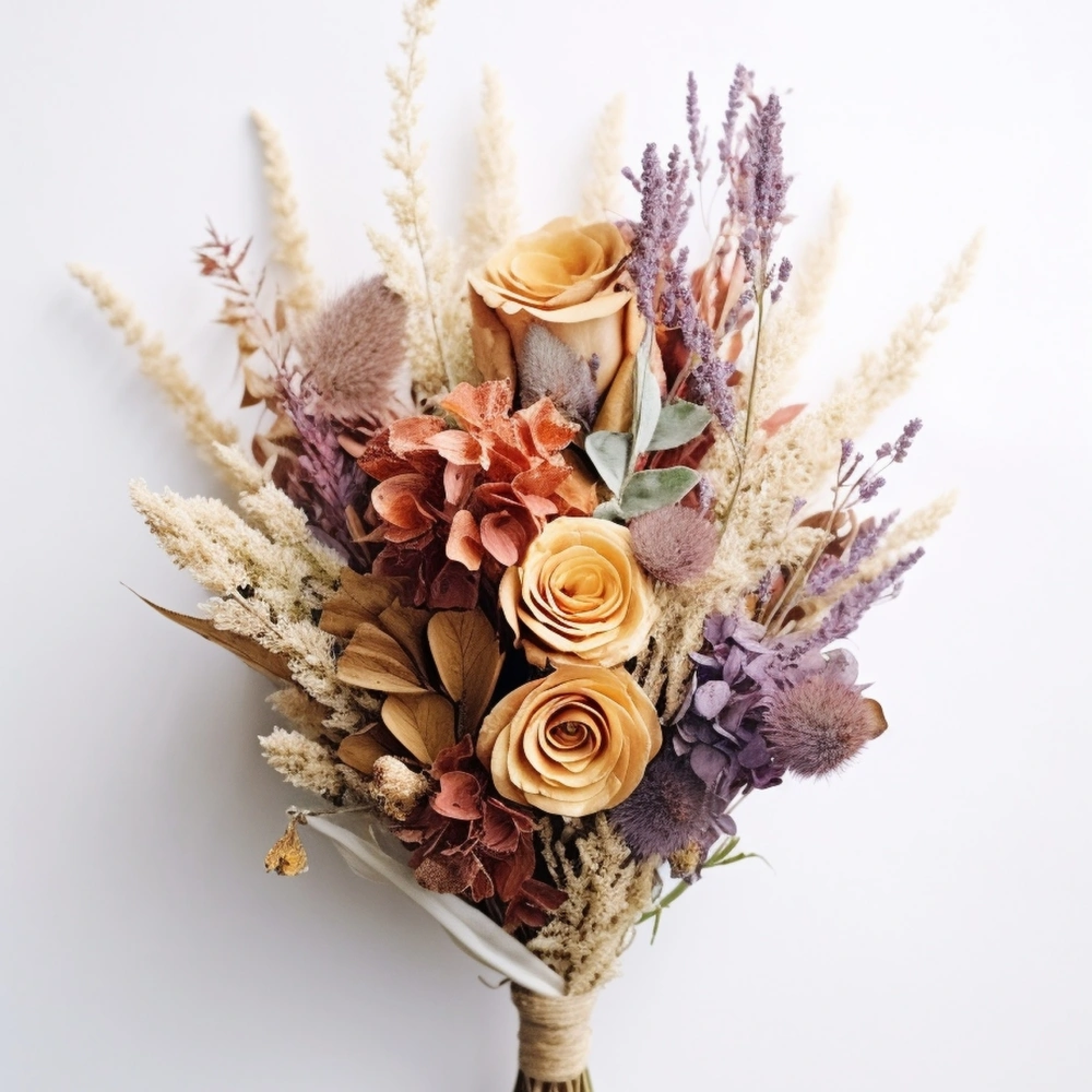 Pampafű, búzavirág és levendula adja a természetes összhatást. Tökéletes választás azoknak, akik szeretik a rusztikus stílust.